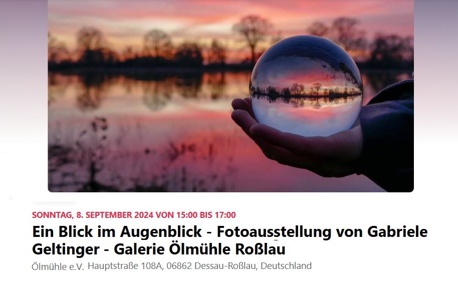 Die Fotografin kennt keine Grenzen und kreiert ihre Welt in Fotos mal anders. Gerda Heintze wurde 1943 in Roßlau geboren, bekam ihren ersten Fotoapparat Perfekta mit 12 Jahren, konnte aber ihren Traumberuf als Fotografin mangels Lehrstelle nicht verwirklichen. Nach langjähriger Berufstätigkeit, zuletzt als Verwaltungsfachangestellte beim Landkreis Anhalt-Zerbst, fand sie wieder zu ihrem geliebten Hobby. Sie ist Mitglied des Fotoclub Zerbst sowie der freien Roßlauer Künstlergemeinschaft Rossel-unArt und präsentiert ihre Werke seit vielen Jahren in öffentlichen Ausstellungen in Roßlau, Dessau, Coswig, Köthen, Zerbst, Leitzkau, Güstrow, Rostock, Magdeburg.